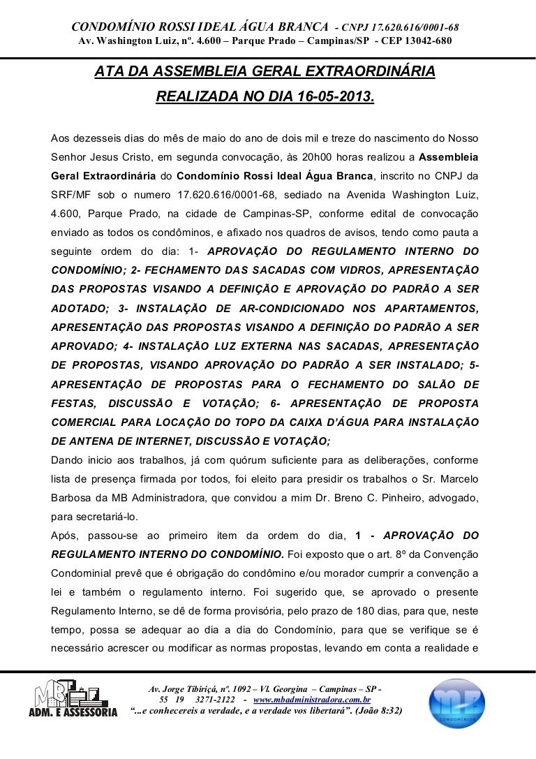 Ata Assembleia Geral Extraordinaria 16 De Maio De 2013 Condominio