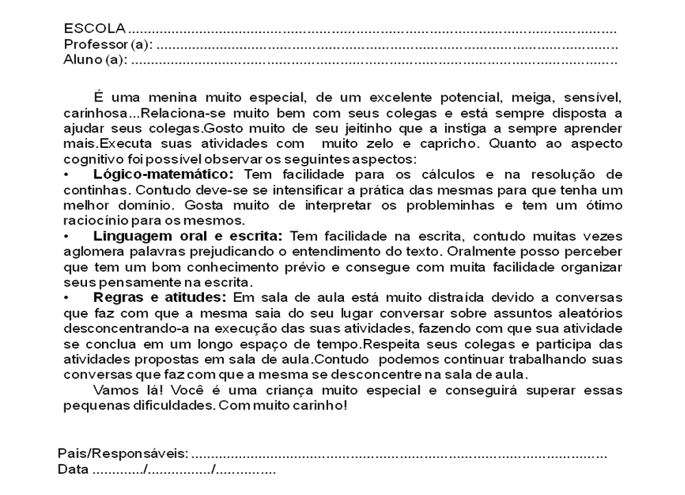 15 Opcoes De Modelo De Relatorio Individual Do Aluno Jet Dicas