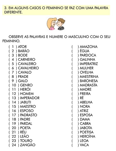 Atividade De Portugues Genero Do Substantivo 4º Ou 5º Ano
