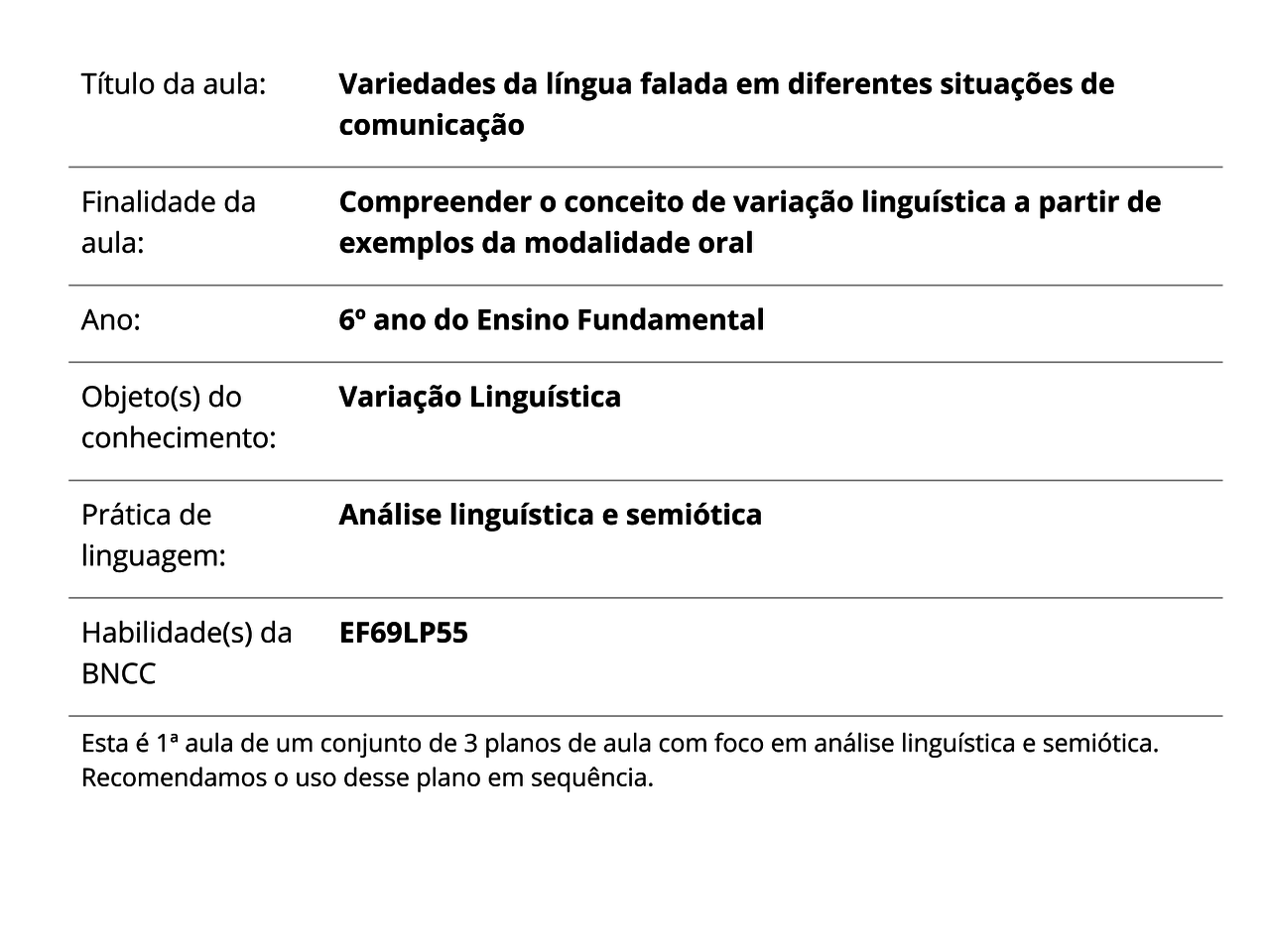 Plano De Aula 6º Ano Lingua Portuguesa Variedades Da Lingua