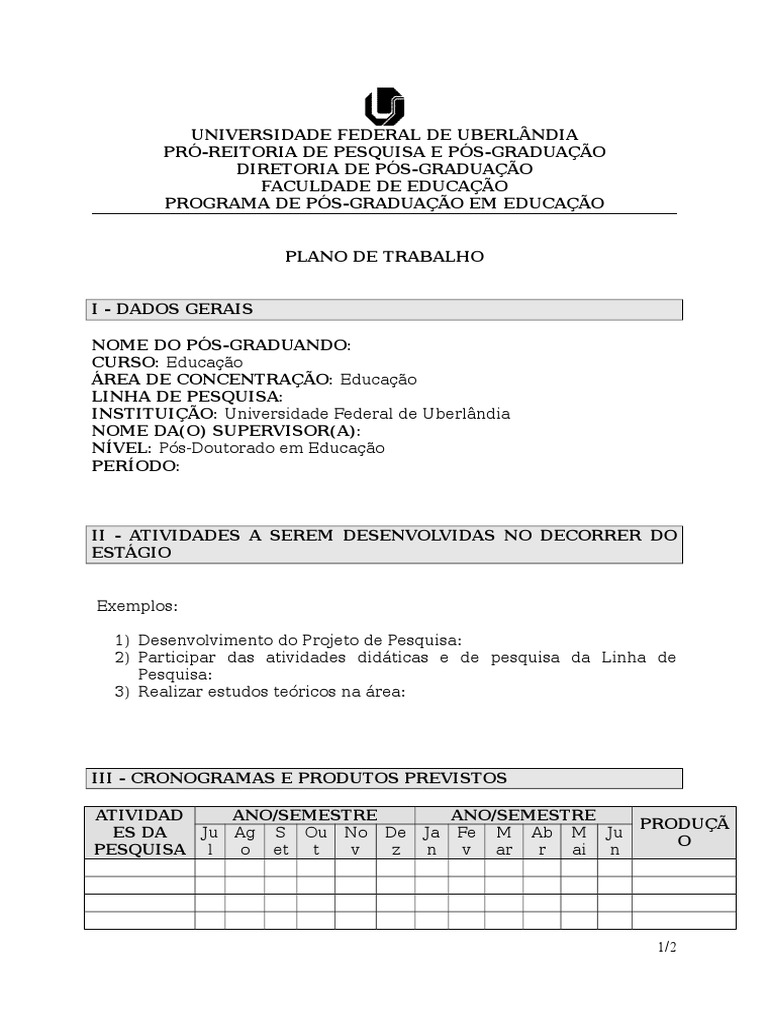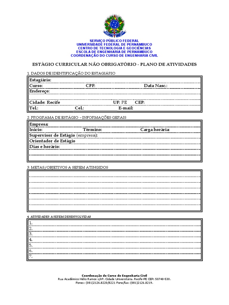 Modelo De Plano De Atividades Ufpe Estagio Obrig