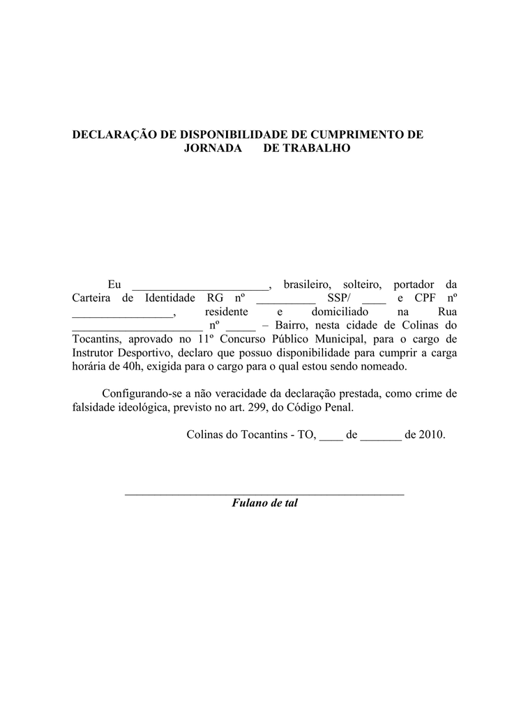 Declaracao De Disponibilidade De Cumprimento De Jornada De T