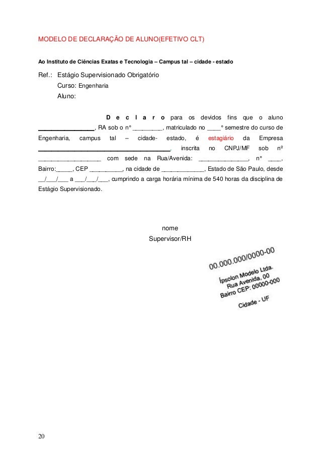 Modelo De Como Deve Ser O Atestado Ou Declaracao De Estagio