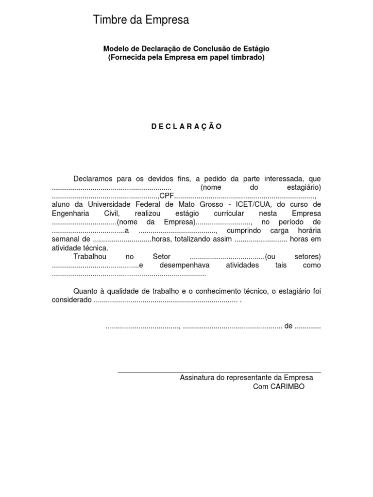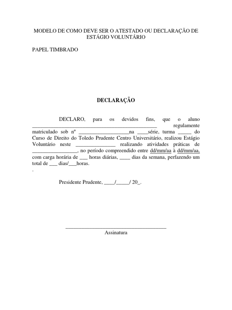 Modelo De Declaracao De Estagio Realizado Em Escritorios De