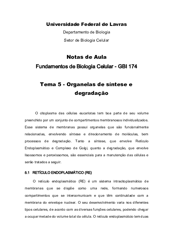 1 o retículo endoplasmático que compreende dois setores denominados de liso e rugoso deve se considerar ainda o envoltório nuclear.