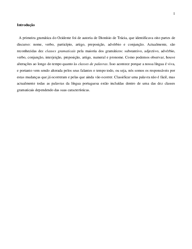 Classes Gramaticais Resumo Simples E Util Sobre Gramatica Docsity