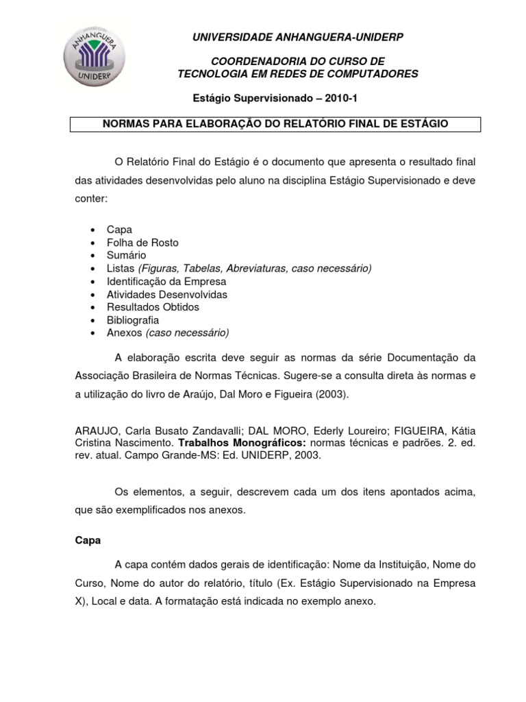 Normas Para Elaboracao Do Relatorio Final De Estagio Anhanguera