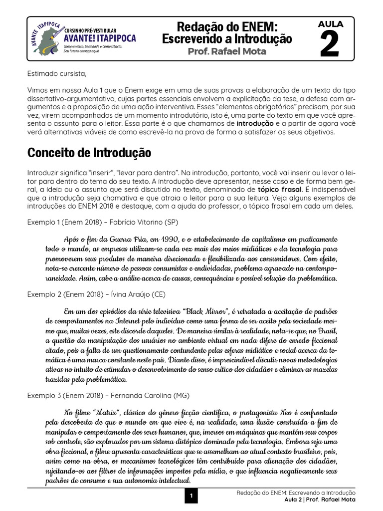 Aula 2 A Introducao Da Redacao Do Enem Brasil Humano