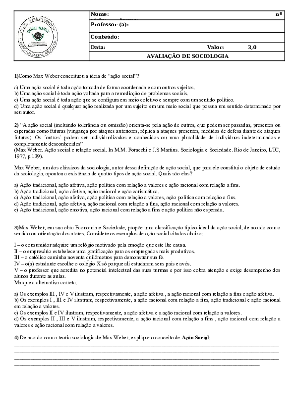 Doc Avaliacao Acao Social Poder Dominacao E Racionalidade