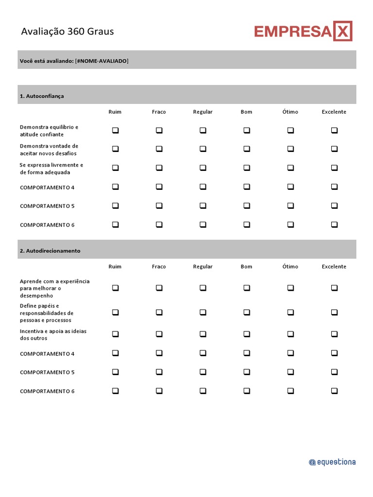 Avaliacao 360 Graus Questionario Exemplo Modelo Comportamento