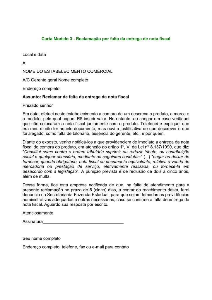 Sao 12 Modelos De Cartas Para As Seguintes Reclamacoes Pdf