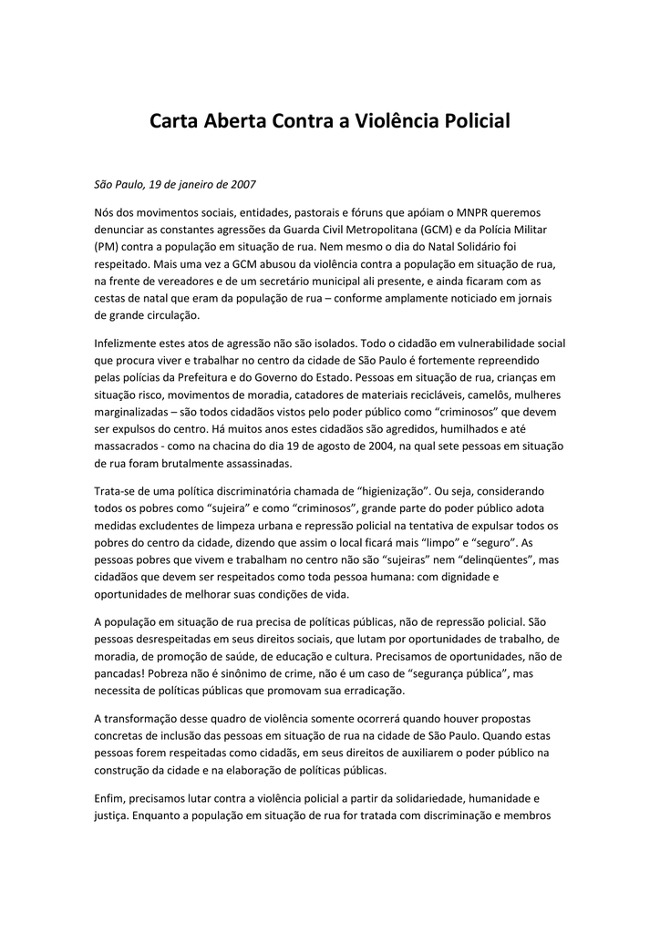 Essa é a discussão que podemos fornecer sobre exemplo de carta aberta sobre violencia. Obrigado por visitar o blog Novo Exemplo 01 January 2019.
