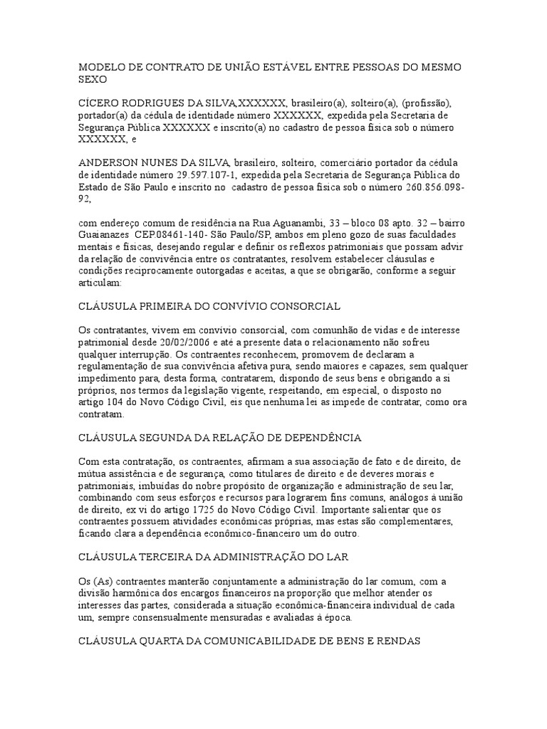 Contrato De Uniao Estavel Modelo De Contrato Particular