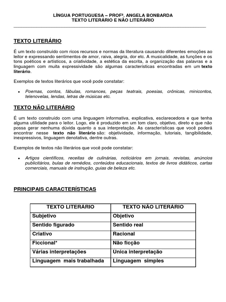 Completo com imagens Exemplo Texto Literário E Não Literário.