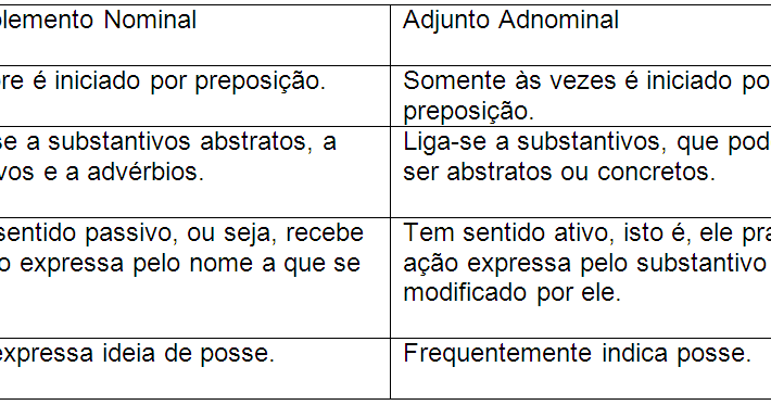 Complemento Nominal E Adjunto Adnominal Qual A Diferenca