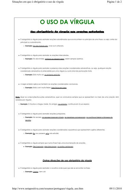 Dados sobre Regras Para O Uso Da Virgula Com Exemplos.