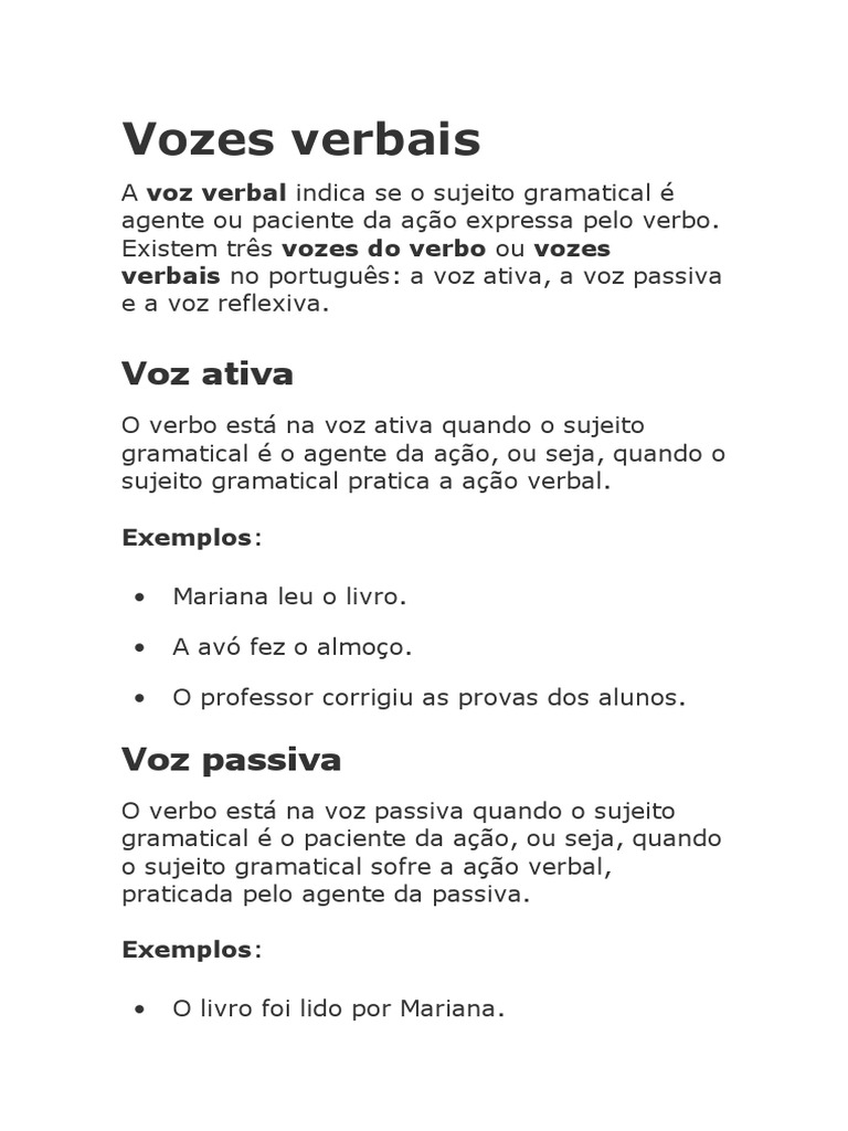 Diferença entre voz ativa voz passiva e voz reflexiva.