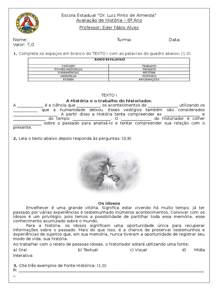 Avaliacao De Historia Introducao A Historia