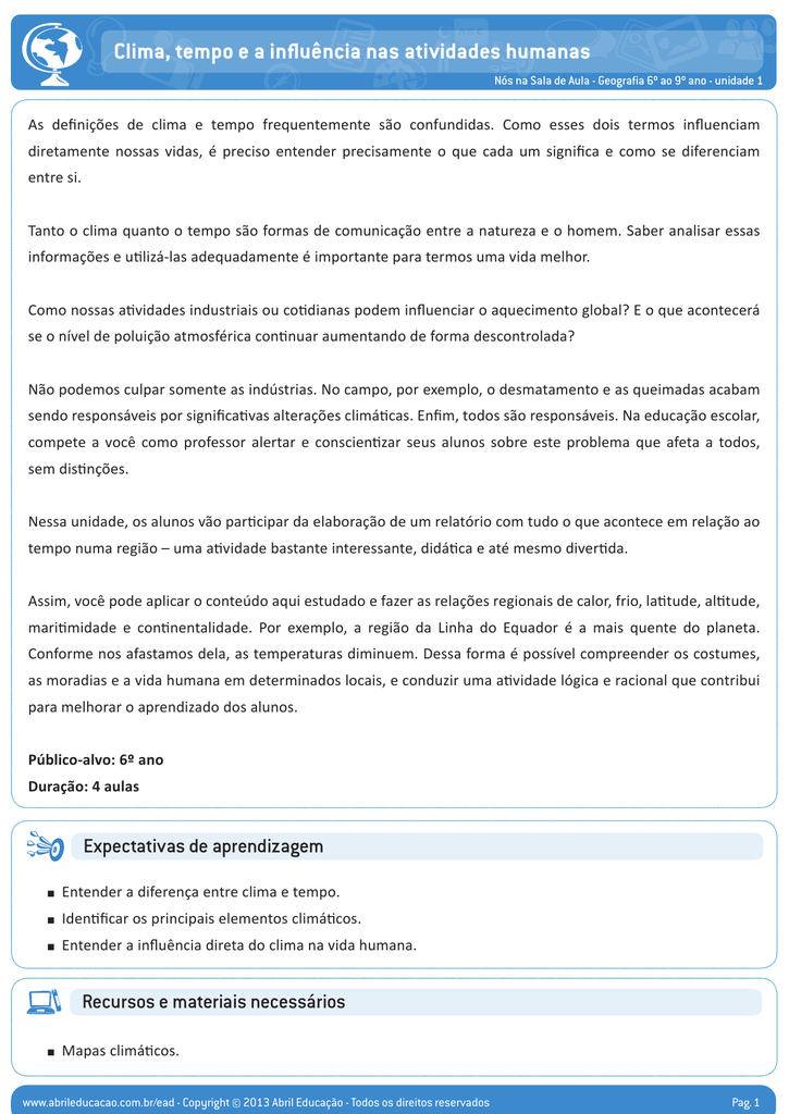Reúne um conjunto de informações sobre os diferentes tipos de clima.