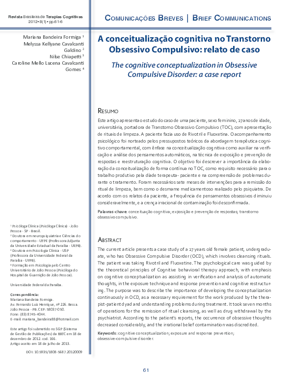Pdf A Conceitualizacao Cognitiva No Transtorno Obsessivo