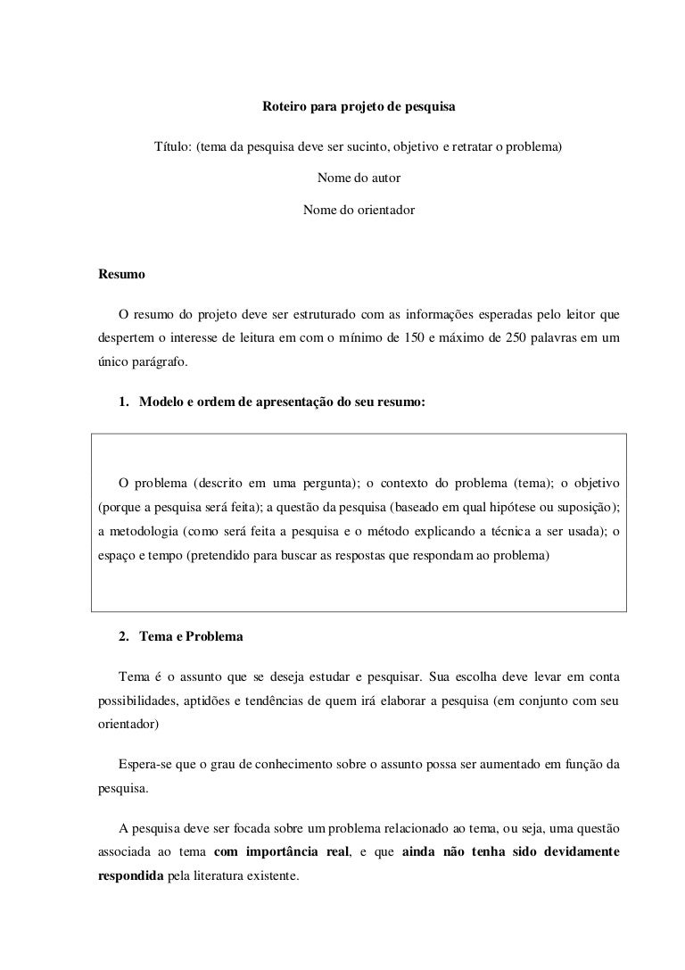 Metodologia do trabalho científico orientações para elaboração do projeto de pesquisa estrutura do projeto de pesquisa apresentação 1 introdução 11 tema e título do projeto 12 situação problema 13 formulação de hipóteses 14 objetivos 141 objetivo geral 142 objetivos específicos 15 justificativa 2 revisão da literatura.