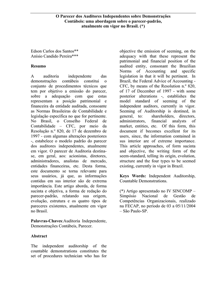 Modelos Deparecer De Auditoria Sem Ressalva 1 Contabilidade