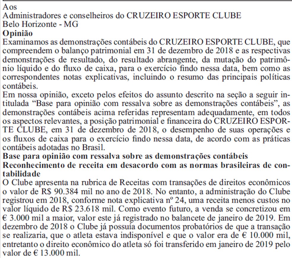Cruzeiro Publica Balanco Financeiro Auditoria Aprova Com
