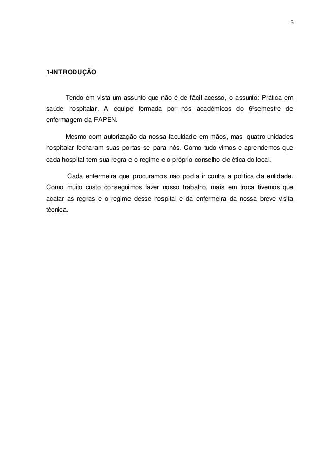 Relatorio De Visita Tecnica Realizada Em Hospital Docsity