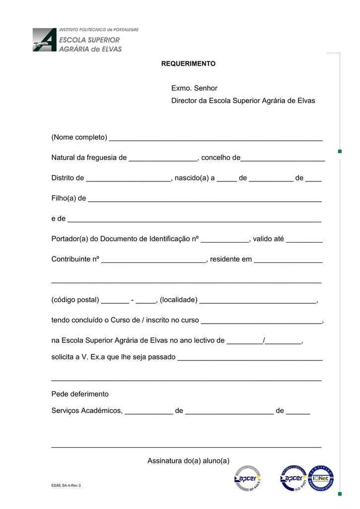 Modelo De Requerimento De Transferencia Escolar