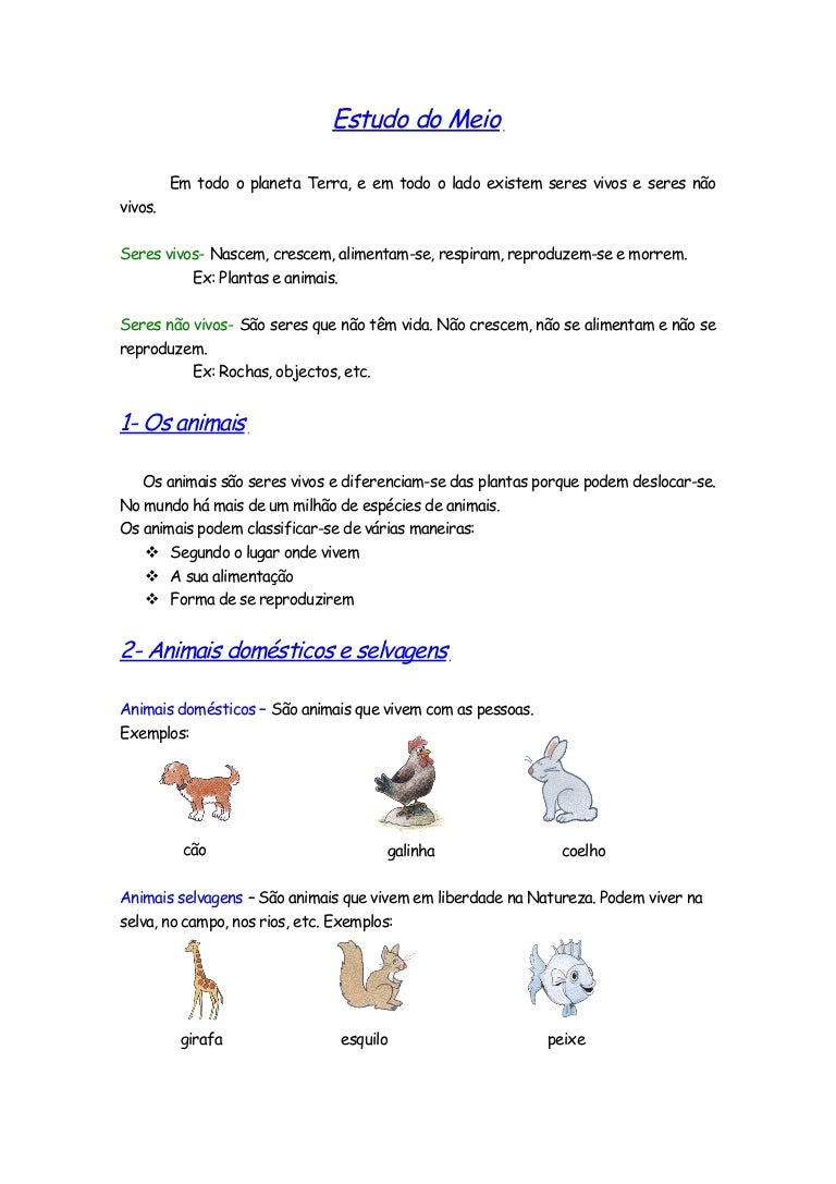 Atividades De Ciencias Animais Animais Domesticos E Selvagens