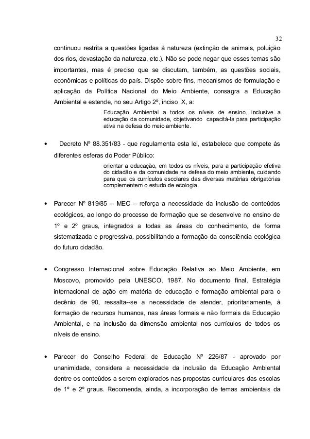Contribuicao Teorico Pratica Na Area De Educacao Ambiental Para A For
