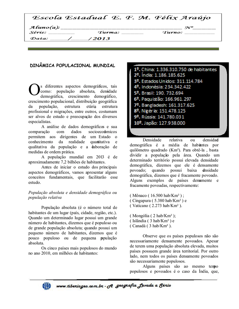 Geografia Populacional Pais Populoso E Pais Povoado Descomplica