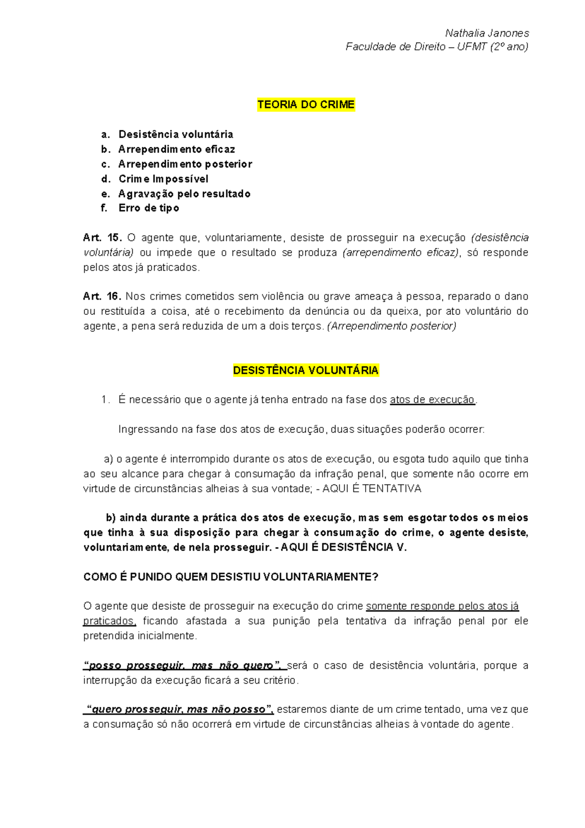 Desistencia Voluntaria E Arrependimento Eficaz Direito Penal 2