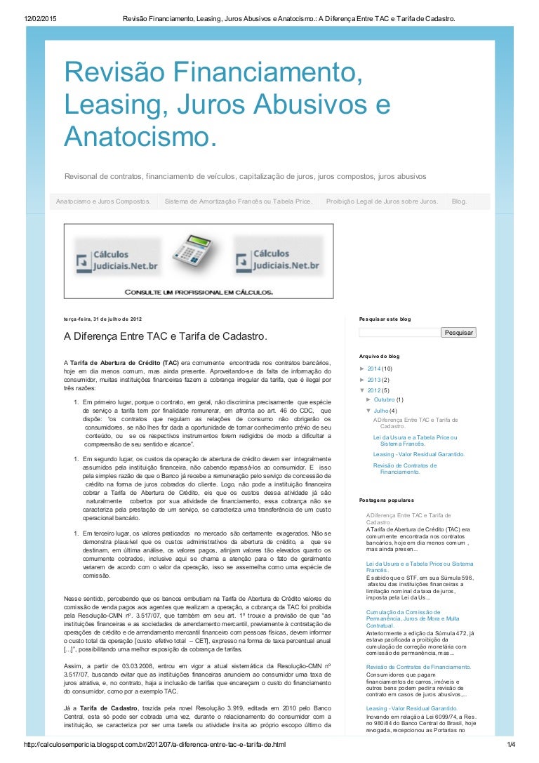 Calculos Judiciais A Diferenca Entre Tac E Tarifa De Cadastro
