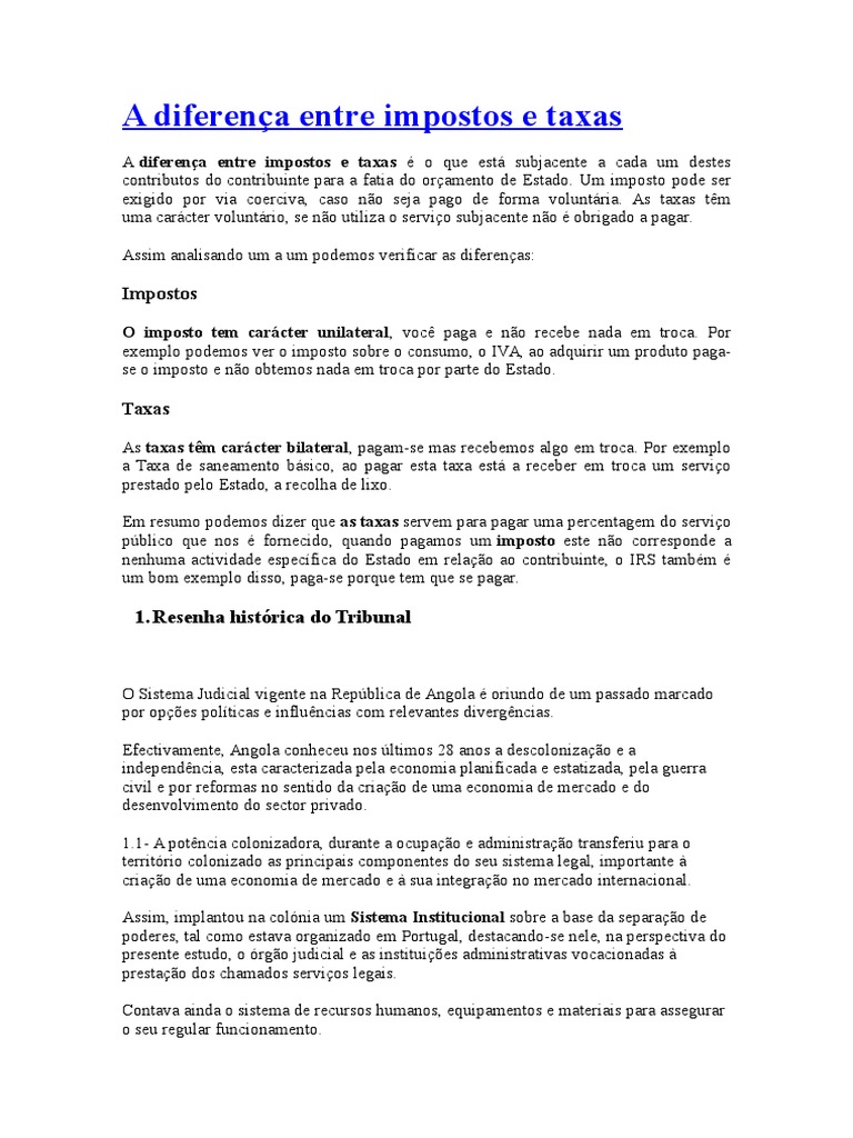 A Diferenca Entre Impostos E Taxas Doc Impostos Angola