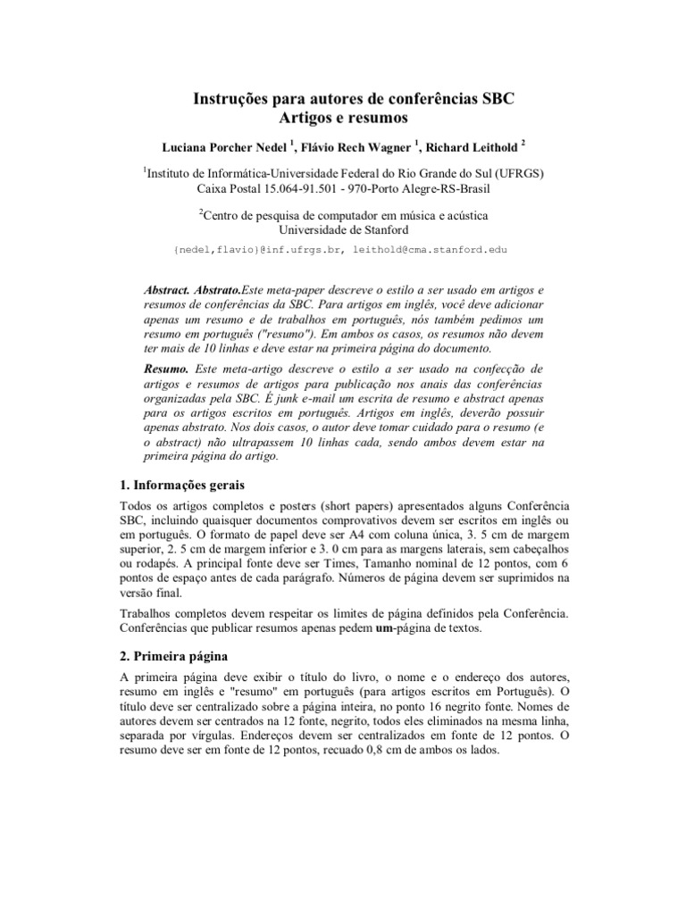 Sbc Template Traduzido Abstract Resumo Lingua Portuguesa