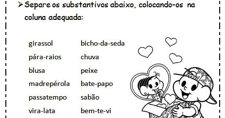 Completo com dados Exemplos De Substantivos Comuns E Simples.