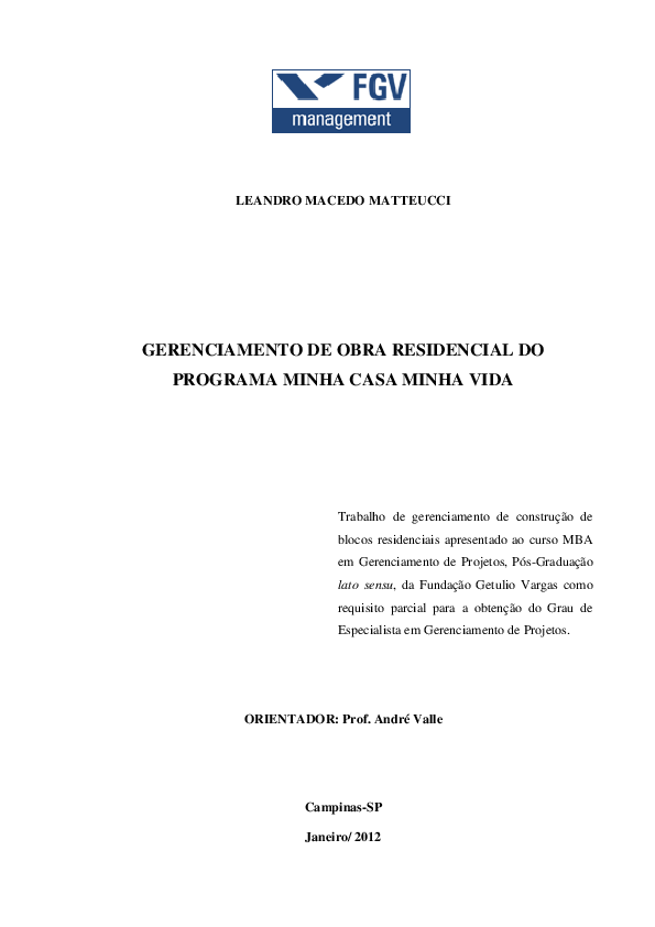 Pdf Gerenciamento De Obra Residencial Do Programa Minha Casa