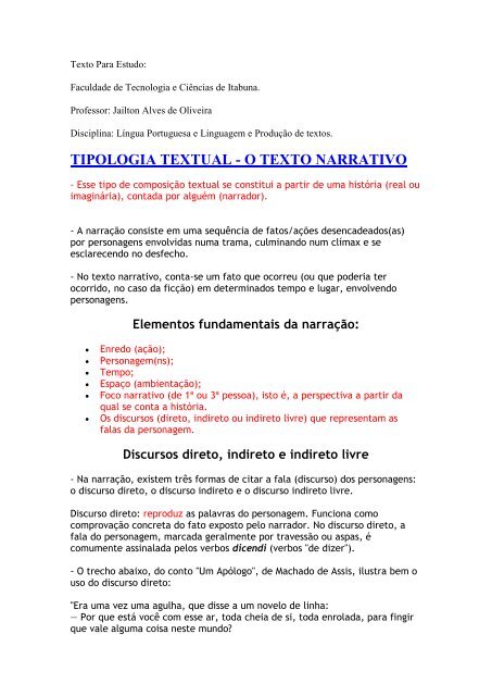 Tipologia Textual O Texto Narrativo Professor Jailton Alves