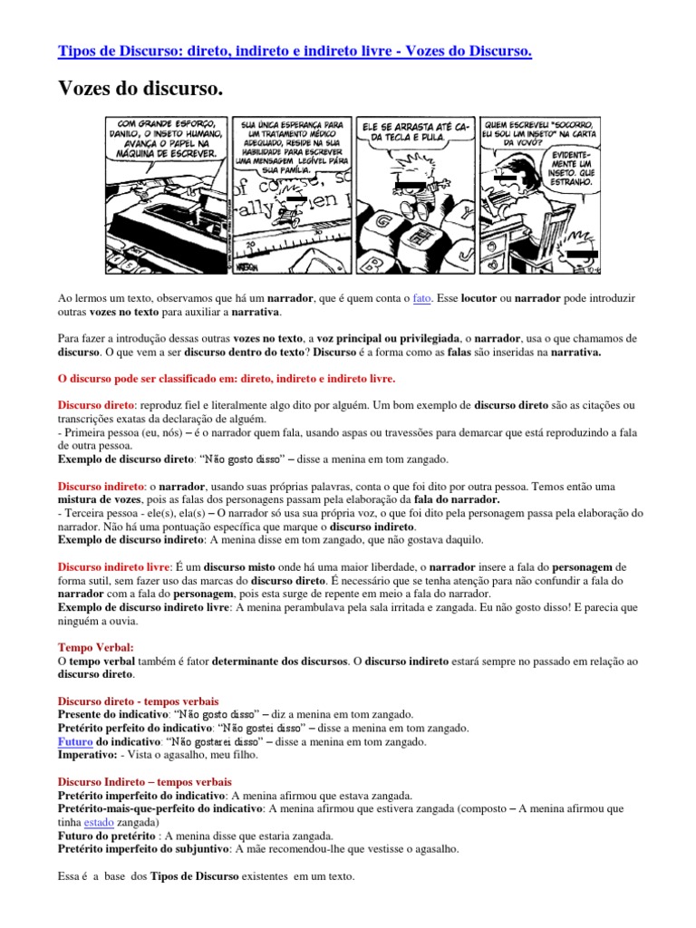 Tipologia Textual E Tipos De Discurso Direto Indireto E Indireto