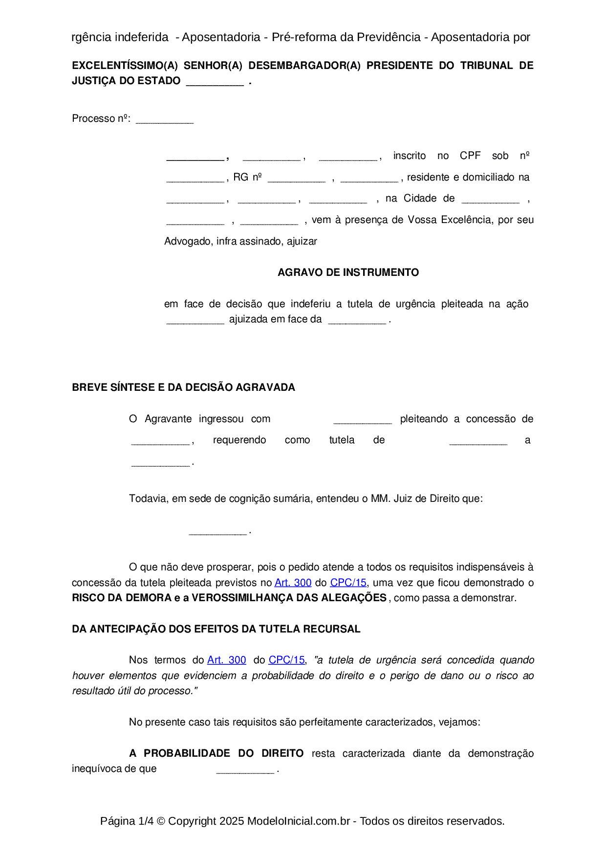 Modelo Agravo De Instrumento Tutela De Urgencia Indeferida