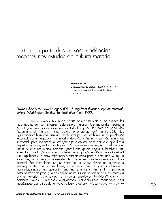 é também através da cultura material que se ajuda a criar uma identidade comumesses objetos fazem parte de um legado de cada sociedade.