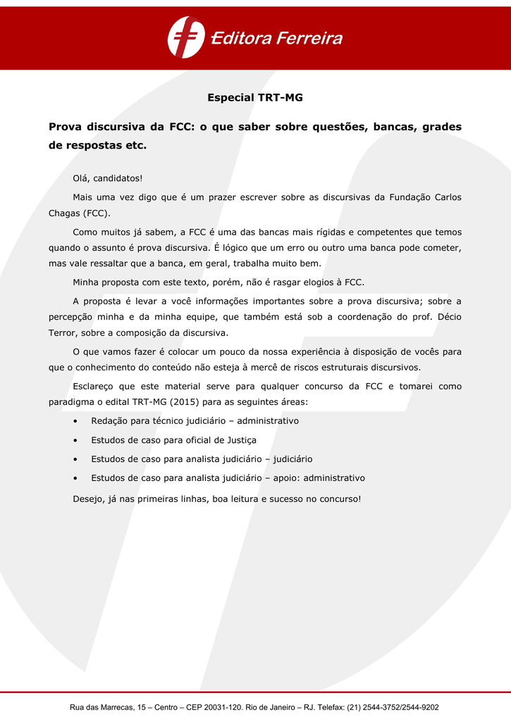 Especial Trt Mg Prova Discursiva Da Fcc O Que
