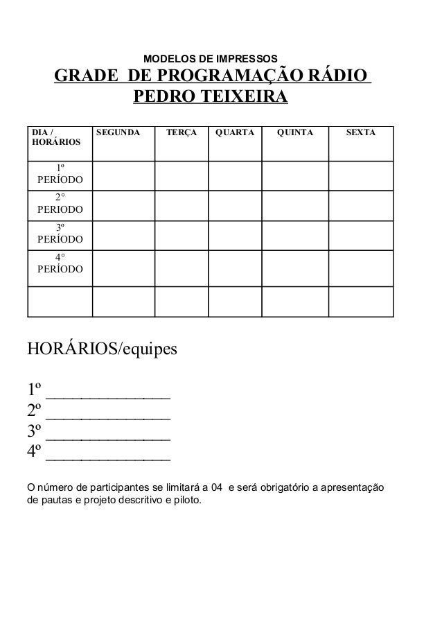 Dados sobre Exemplo De Grade De Programação De Rádio.