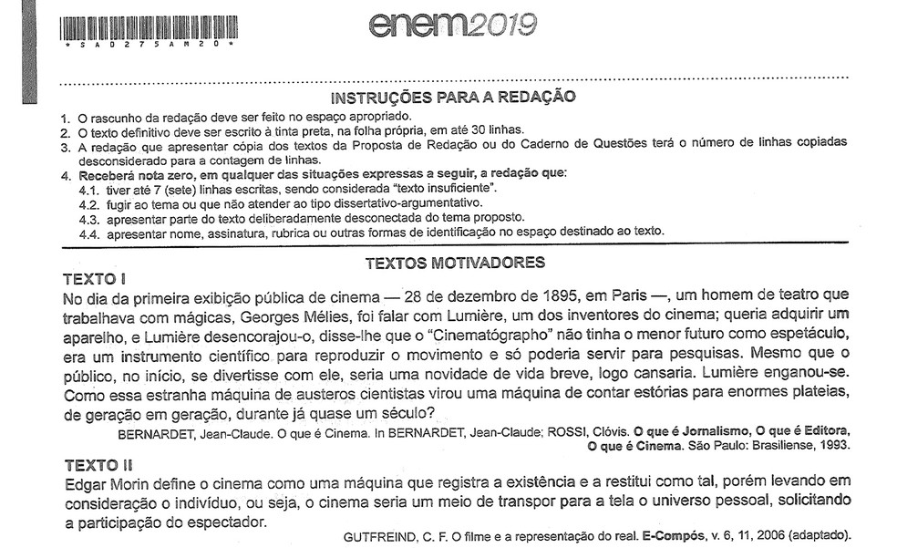 Tema De Redacao Do Enem 2019 Democratizacao Do Acesso Ao Cinema