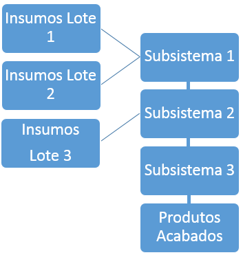 Com a produção de lotes os materiais são utilizados para completar um único.