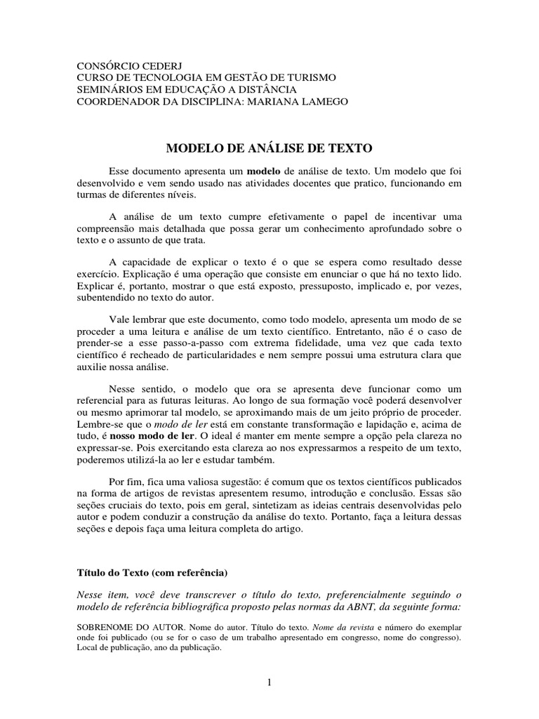 Modelo De Analise De Texto Ciencia Educacao A Distancia