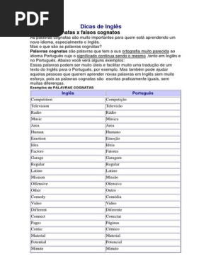 Cognatos E Falsos Cognatos Em Ingles Docx Lingua Portuguesa