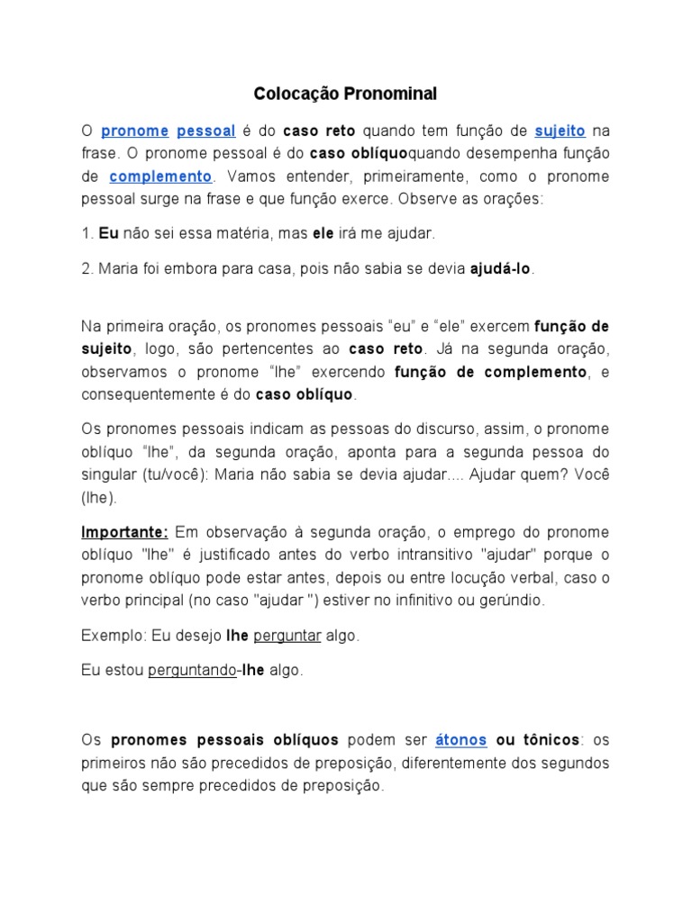 Colocacao Pronominal Pdf Pronome Relacionamentos Sintaticos