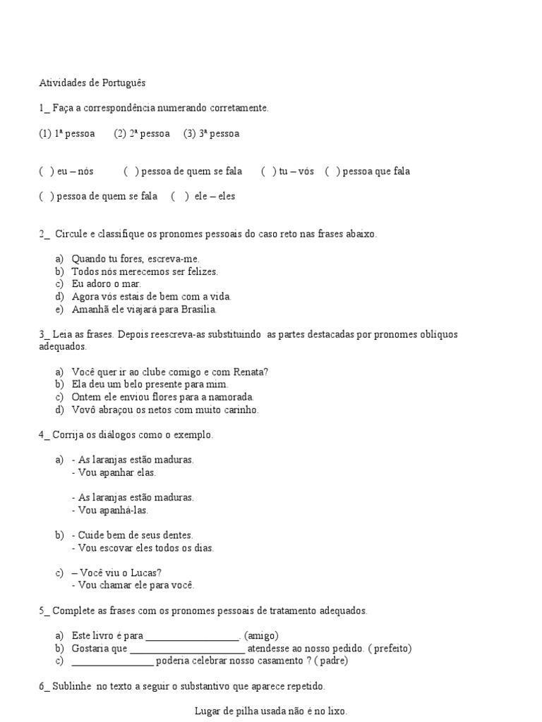 Resultado De Imagem Para Textos Com Pronomes Pessoais Do Caso Reto